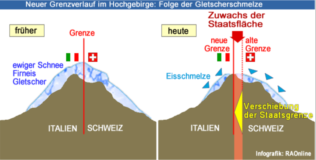 I confini terrestri sono spesso considerati linee fisse permanenti, ma nelle regioni montuose come le Alpi, dove lo scioglimento dei ghiacciai e il permafrost stanno rimodellando il paesaggio, a volte le autorità locali sono costrette a ridisegnare la mappa