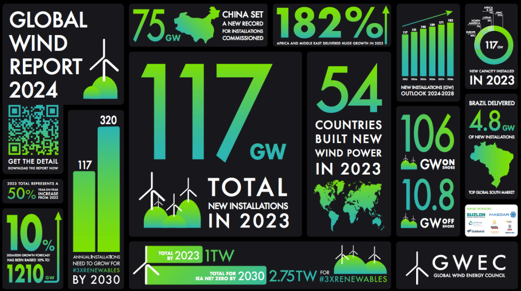 Il Global Wind Report 2024 evidenzia un crescente slancio nella crescita dell’energia eolica a livello mondiale: