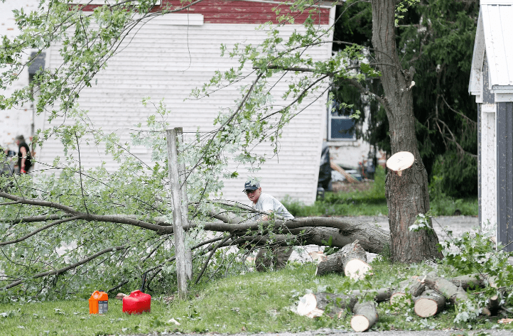 Quando è successo, ero pronto ad attraversare il lago Champlain qualche giorno dopo, verso le Adirondack nella parte settentrionale dello stato di New York, la parte più selvaggia dell’est e il posto in cui mi sento più a casa su questo pianeta. Stavamo nella casa in cui abbiamo vissuto per decenni, sperduta nel bosco, la casa in cui è nata nostra figlia e dove nostro nipote celebrerà la cerimonia del suo nome tra qualche settimana. E nel tardo pomeriggio di martedì, dopo 48 ore del clima più umido che ricordi lì, è scoppiata all’improvviso la tempesta più violenta che abbia mai vissuto. Non è durata più di quattro minuti, ma quei 240 secondi sono stati più che sufficienti: all’istante gli alberi si sono piegati in due e poi spezzati. Sembrava una di quelle foto di uragani del Weather Channel, solo che al posto delle palme che si piegavano al vento c’erano pini e cedri giganti che si spezzavano o che spuntavano dalle radici; il vento era così forte (quasi 145 km/h nella città più vicina con una stazione meteorologica) che il diluvio di pioggia stava soffiando verso l’alto e verso il basso. Quando è finita e siamo usciti, i danni erano quasi incredibili: alberi caduti sui tetti delle case vicine, alberi a decine dall’altra parte della strada per la città (che è stata completamente impraticabile per almeno un giorno), fili che penzolavano in ogni direzione.
