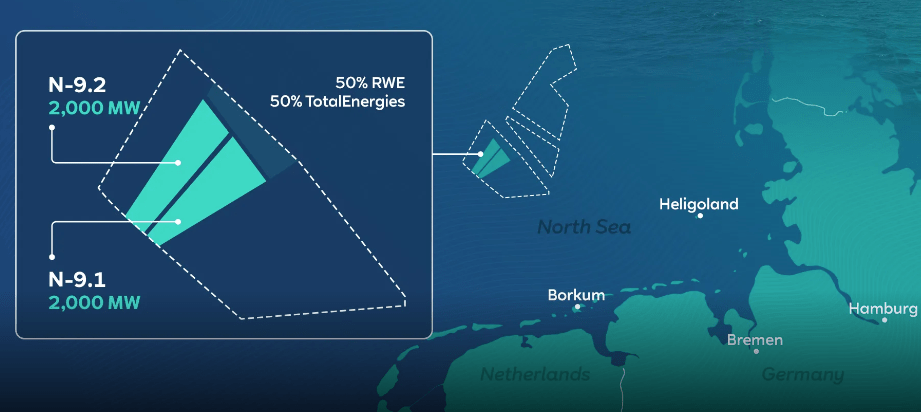 RWE e TotalEnergies hanno unito le forze per sviluppare due grandi progetti eolici offshore al largo della costa tedesca, per una capacità totale di 4 GW. TotalEnergies acquisirà una quota del 50% in entrambi i progetti, che sono stati assegnati a RWE durante la recente asta eolica offshore della Germania. Situati a 110-115 chilometri a nord-ovest di Borkum, i siti possono ospitare parchi eolici offshore con una capacità di 2.000 megawatt ciascuno. Le decisioni di investimento sono previste per il 2027 e il 2028, con l’inizio della costruzione previsto per il 2029 e il 2030.