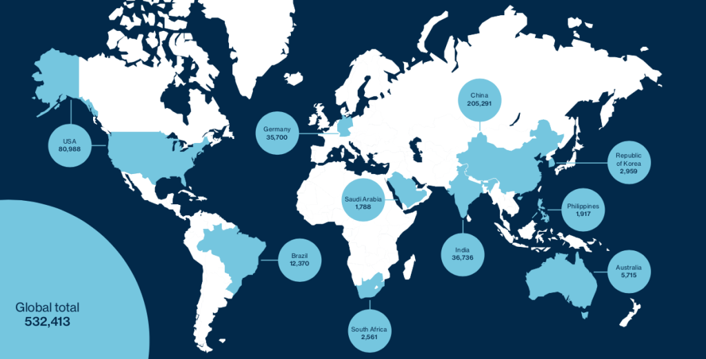 Entro la fine del 2028, si prevede che la capacità eolica operativa globale totale supererà i 1.800 GW. In linea con questa crescita, si prevede che il numero totale di tecnici necessari supererà i 532.400.