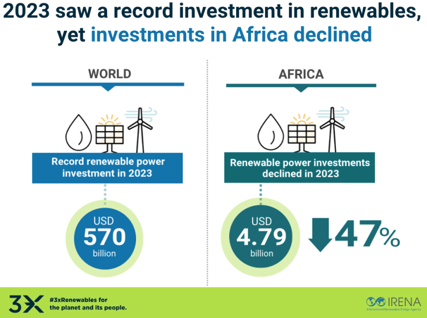 Nel 2023, il mondo ha investito la cifra record di 570 miliardi di dollari in energie rinnovabili. Tuttavia, l’investimento non è equo, con le economie emergenti e in via di sviluppo che devono affrontare lacune di finanziamento e cali.