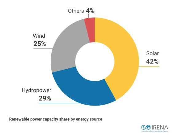 Solare: il solare fotovoltaico è aumentato di 451,9 GW lo scorso anno. La sola Cina ha aggiunto 278 GW all’espansione totale, seguita dall’India (24,5 GW).