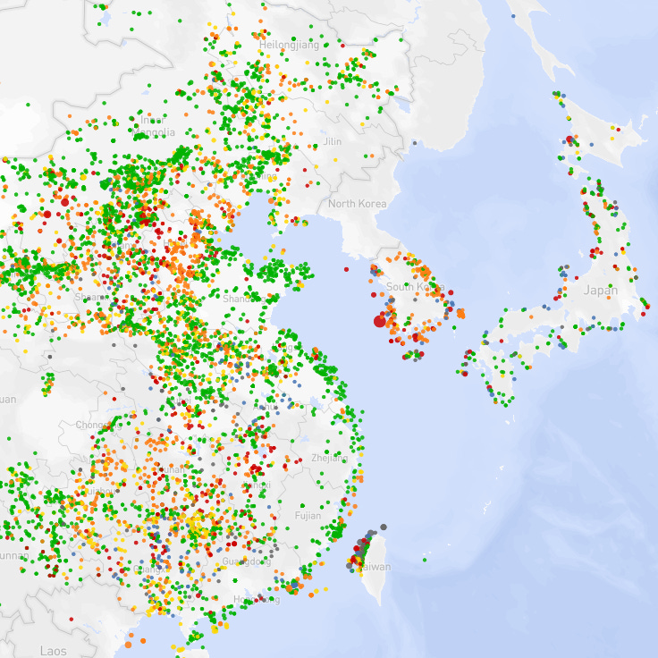 L’amministrazione ha affermato che c’erano ragioni di “sicurezza nazionale” per la chiusura che non riuscivano a spiegare, ma che avevano a che fare con il radar. Vi perdonerò il vostro scetticismo su questa logica. Il comandante della Marina in pensione Kirk Lippold ha affermato che il Dipartimento della Difesa aveva esaminato attentamente i progetti e ha aggiunto: “Ironicamente, questi progetti andranno effettivamente a beneficio della nostra sicurezza nazionale diversificando le forniture energetiche americane, fornendo energia affidabile e tanto necessaria alla rete e aiutando la nostra economia“. Se volete saperne di più su questo aspetto, date un’occhiata all’ottimo saggio di Peter Gleick. O forse basta dare un’occhiata a una mappa degli impianti eolici asiatici, offshore e terrestri; la costa cinese, secondo la logica trumpiana, è apparentemente il luogo più vulnerabile del pianeta Terra.